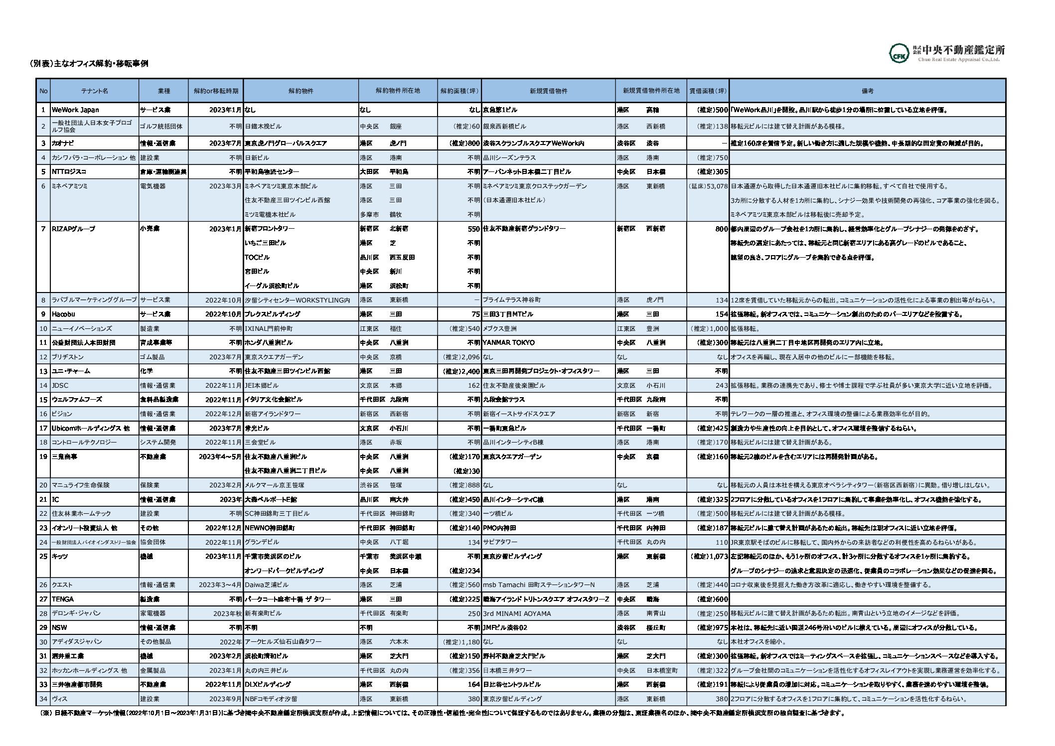 主なオフィス解約・移転事例