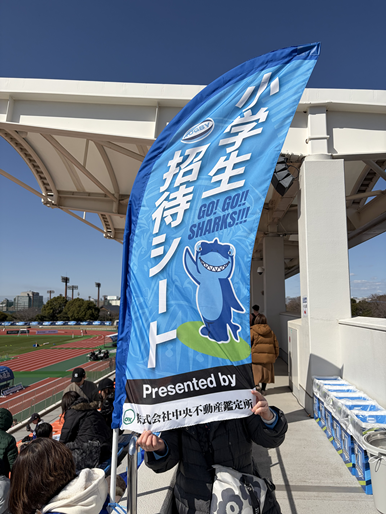小学生と保護者の方々のご招待席はメインスタンド。のぼりが目印です。